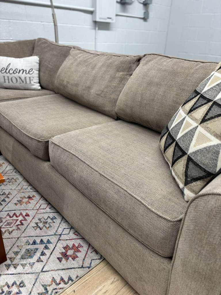 The Raymour & Flanigan Kipling Sectional combines comfort, durability, and style in one timeless piece. Its textured herringbone upholstery adds a premium look, while the reversible cushions extend the lifespan and maintain a fresh appearance. Perfect for living rooms, apartments, and open floor plans needing a classy, neutral statement piece.