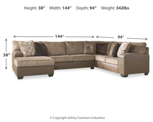 • Includes 3 pieces: left-arm facing corner chaise, armless loveseat and right-arm facing sofa