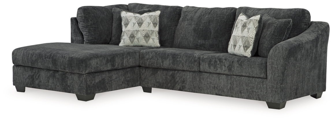 - Includes 2 pieces: left-arm facing corner chaise and right-arm facing sofa