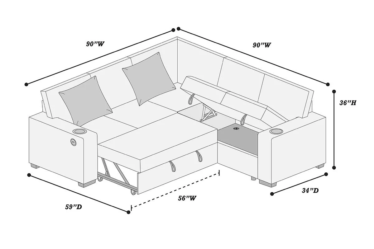 Soft, modern L-shaped sectional designed to bring comfort, storage, and flexibility into one piece. It features a pull-out sleeper, hidden storage, built-in cup holders, and USB charging so everything you need stays right at your seat.