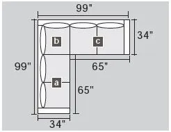 Overall: 99″ L × 99″ W × 34″ D × 35″ H