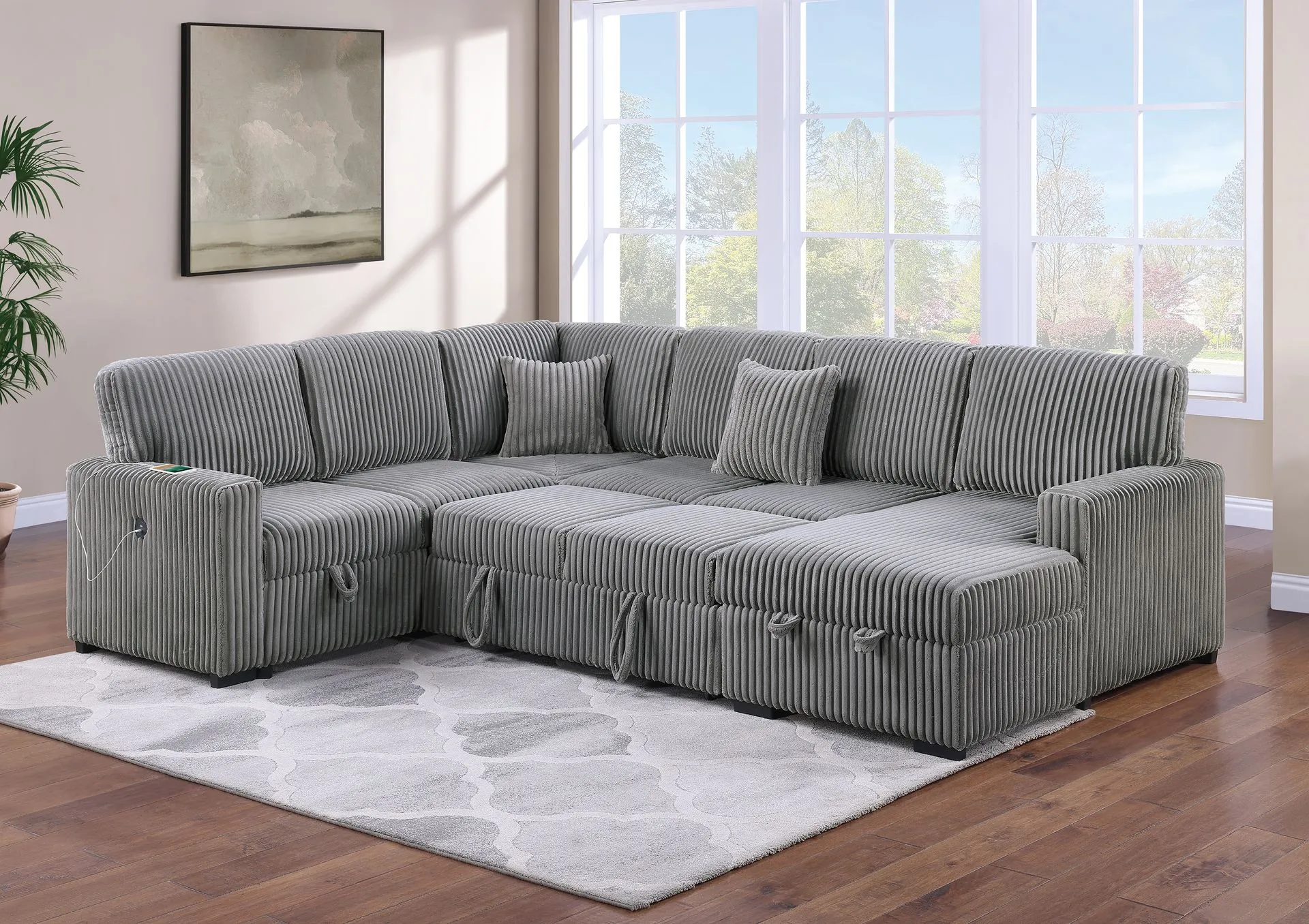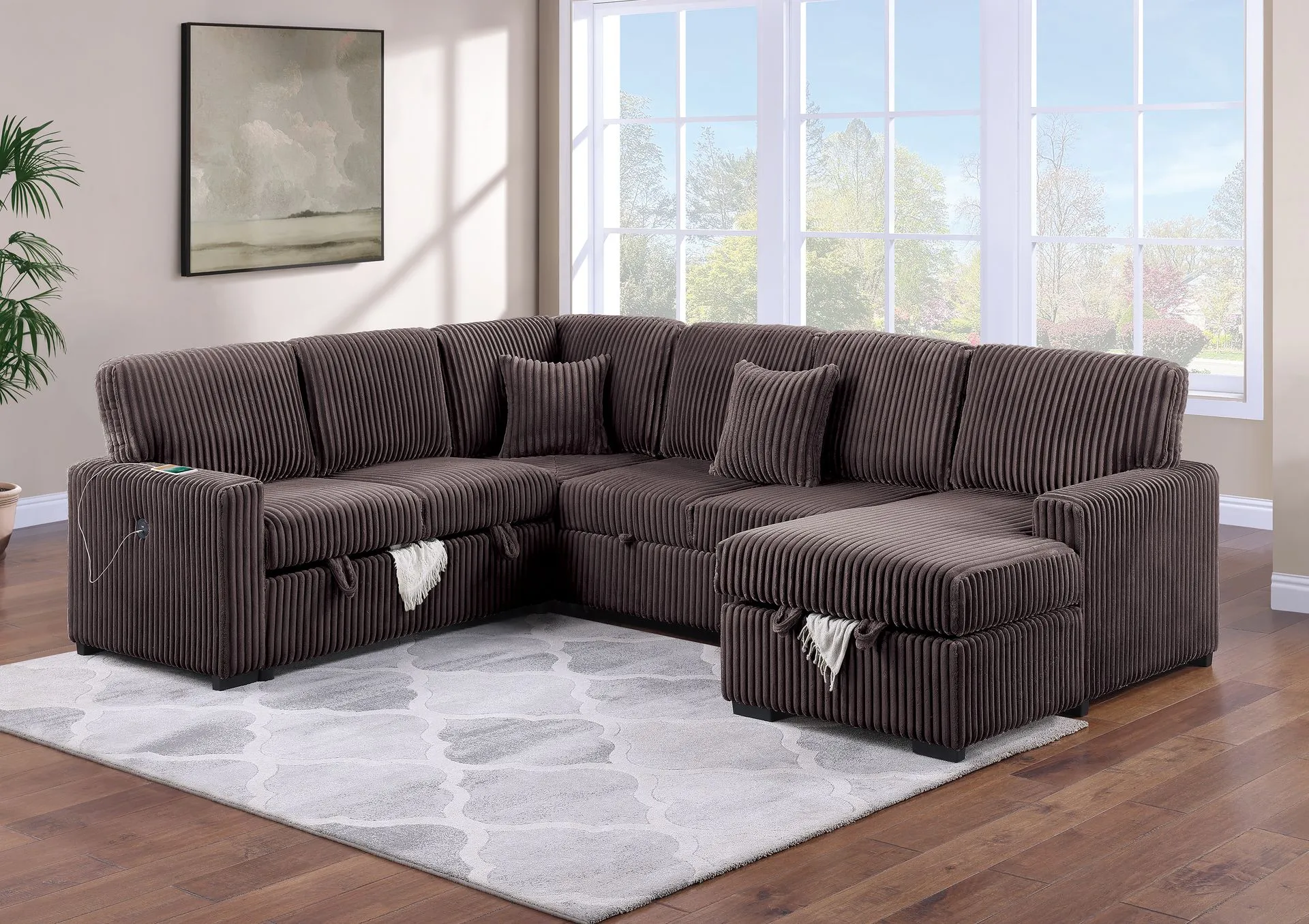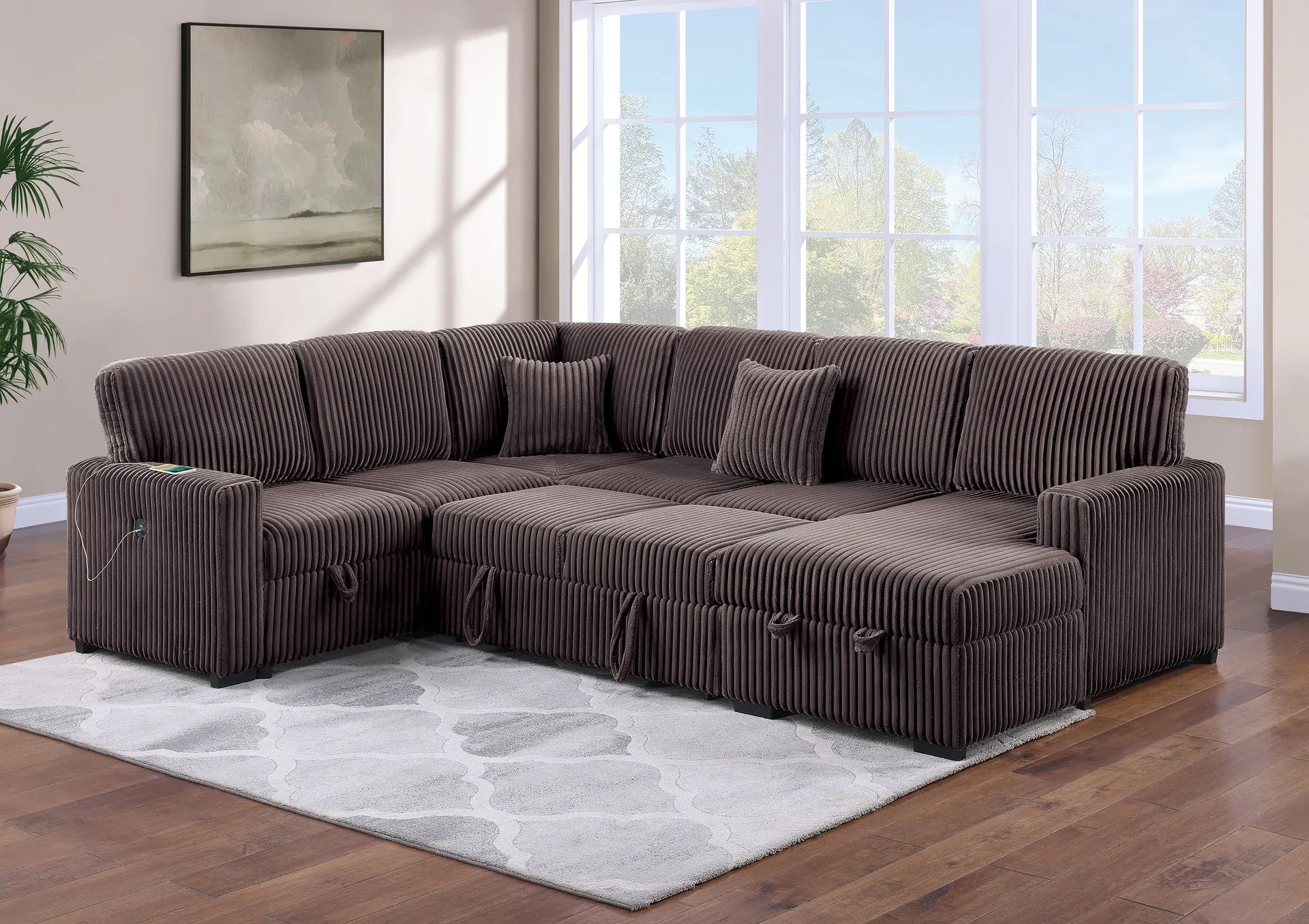 This roomy L-shaped sectional is built for modern living, combining soft fur-like corduroy with smart features that make everyday lounging and hosting easy. With hidden storage in both the chaise and sofa plus a pull-out bed in the center, it gives you space to relax, stay organized, and welcome overnight guests without needing extra furniture.