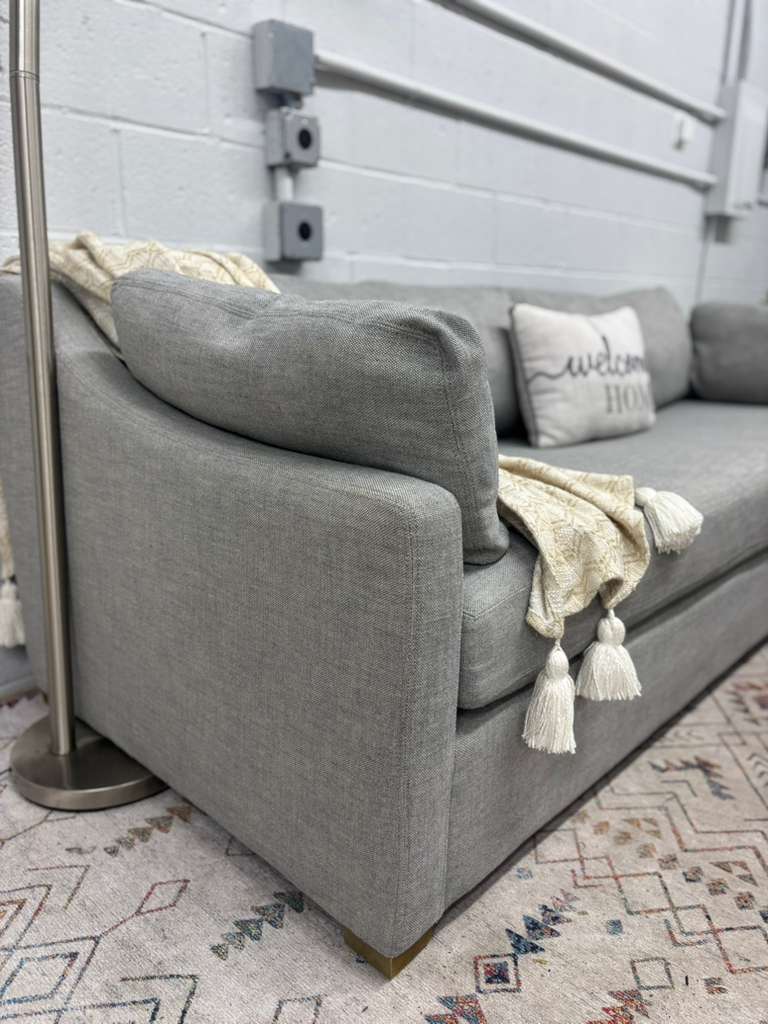The Restoration Hardware Belgian Classic Slope Arm Sofa is a timeless luxury staple, known for its relaxed elegance and unmatched comfort. Upholstered in RH’s premium Belgian Linen, this sofa delivers a refined yet inviting feel that works beautifully in both modern and classic interiors. A true designer piece at a fraction of retail.