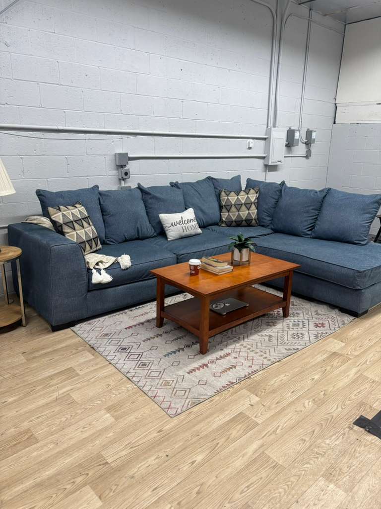 This Rooms to Go Bellehurst sectional is big, cozy, and perfect for relaxing. The blue color looks great in any living room. The cushions are soft but still supportive, making it great for everyday use. Plenty of space to stretch out or sit with friends and family.